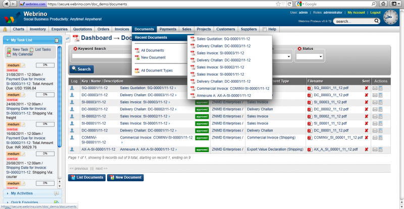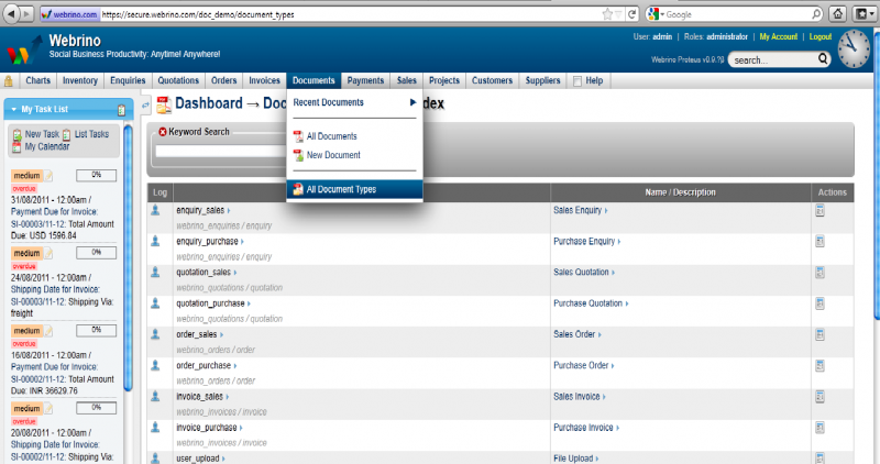 9. Mouse-Over on Documents Menu from the drop down, select All Document Types
