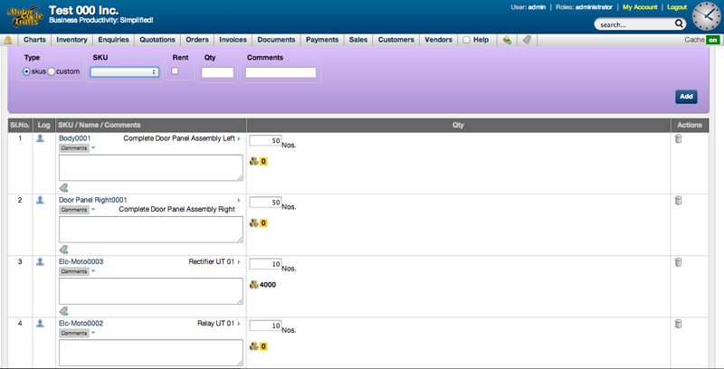 - Select the SKU(s), enter quantity and comments if needed