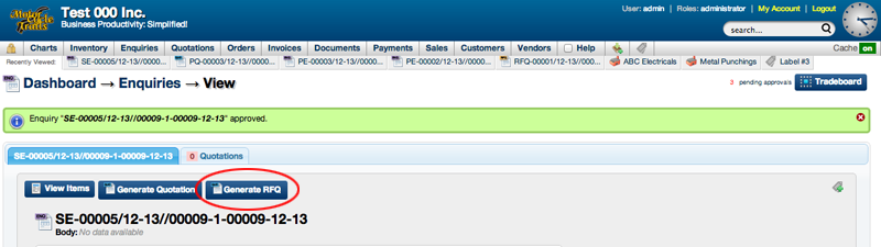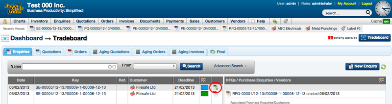 The Tradeboard can be used to directly add new enquiries and generate RFQ's from these enquiries. The Tradeboard also allows easy tracking of the status of these RFQ's.