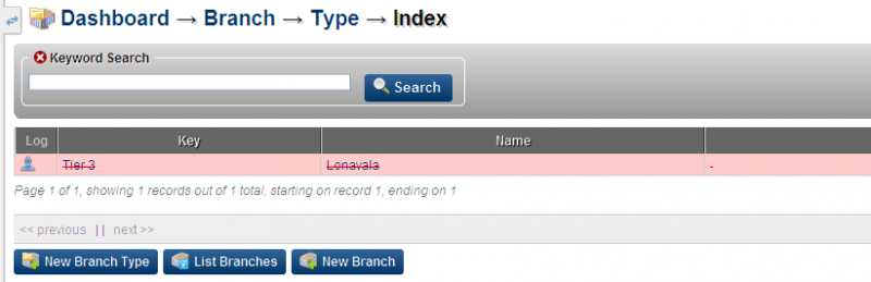 13. A deleted (red-crossed record) can be Undeleted from the List Branch Type window from the same Actions Column as described above