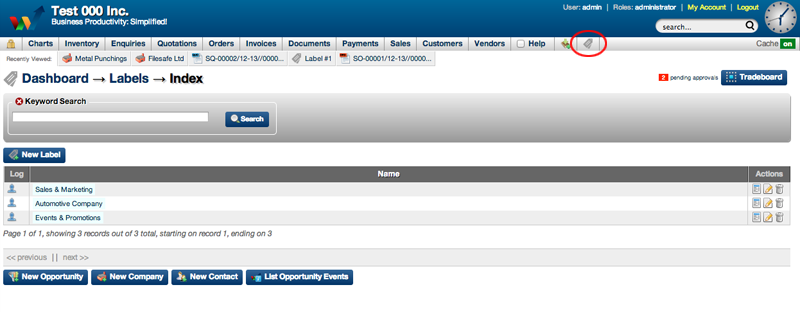 - Under the Actions Column of the Labels Index, labels can be Viewed, Edited or Deleted