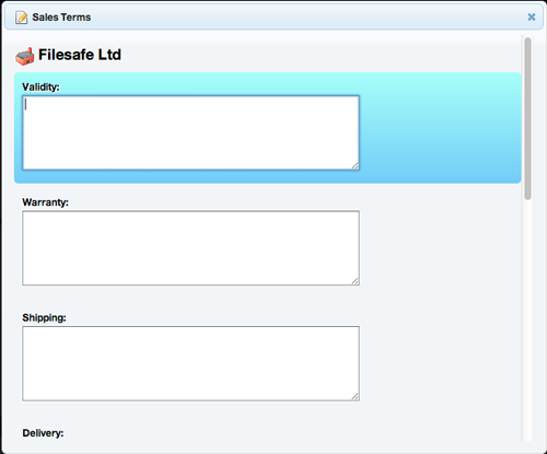 - Sales Terms window will open