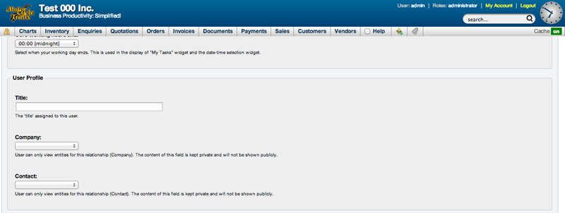- On the My Account Admin page, scroll down to the User Profile section of the page