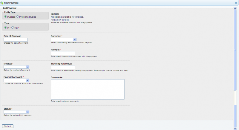 4. Select the entity for which this Payment is valid : Invoice or the Proforma Invoice