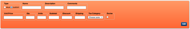 Custom Items are items that are not predefined. As a result, when you are adding custom items to an Order, you need to very clearly specify the following fields