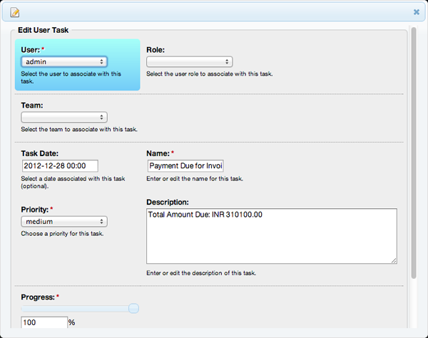 - Edit User Task window will open
