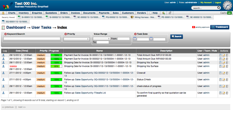 - User Tasks Index page will open